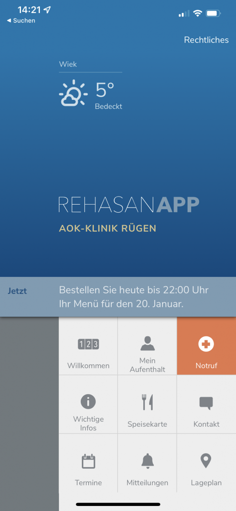 Im Zeitraum vor der Kur sind folgende Funktionen nicht erreichbar: