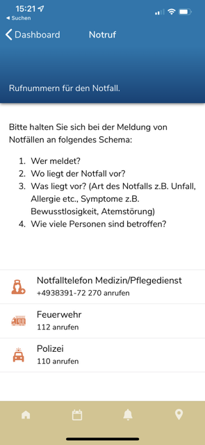 In einem Notfall können Sie entscheiden, ob Sie direkt zur Feuerwehr durchgestellt werden möchten oder mit dem Notfalldienst in der Klinik sprechen wollen.