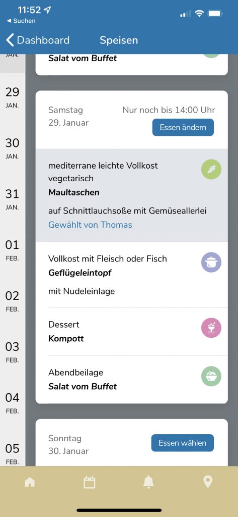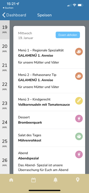 Übersicht über den Speiseplan, angezeigt werden die nächsten 7 Tage: