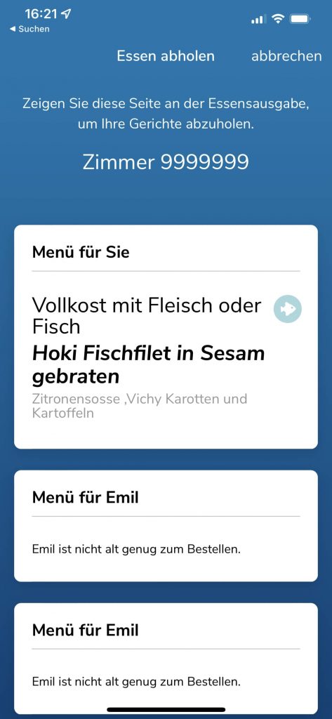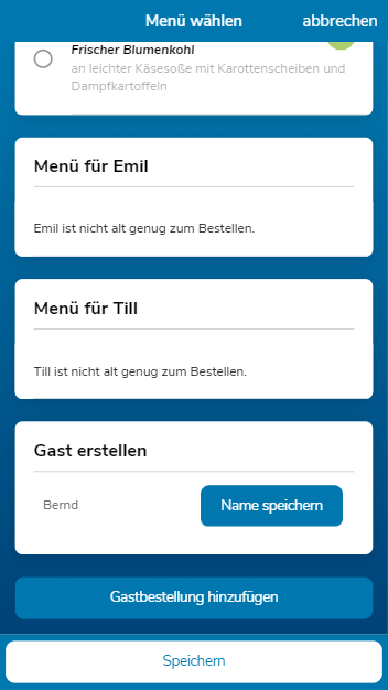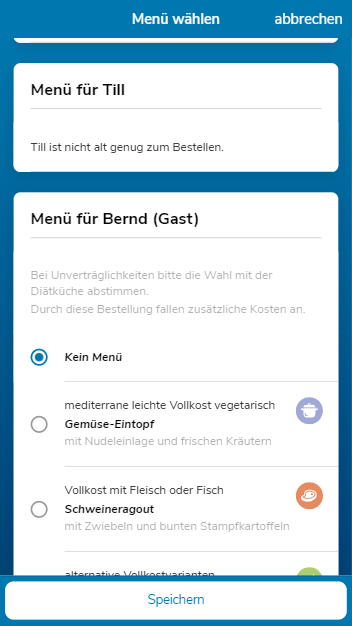 - Wählen sie ein Menü für Ihre Kinder / Begleitpersonen