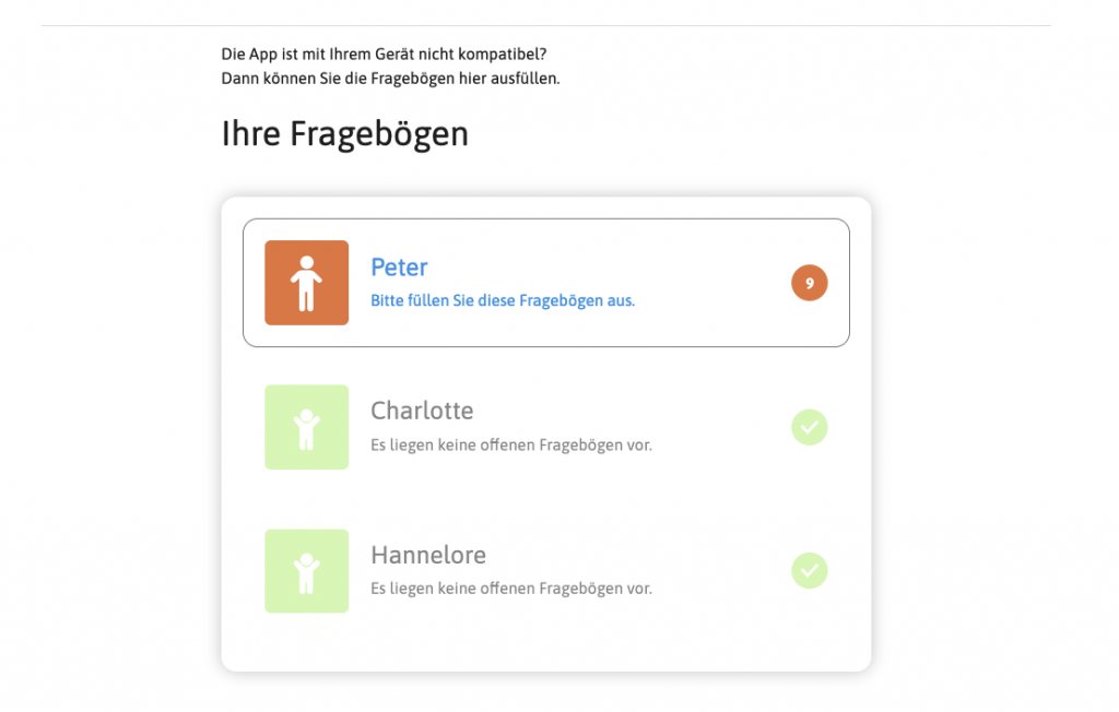Alle, die Ihnen zugewiesen sind, müssen vollständig ausgefüllt werden. Wir wissen, dass es Arbeit für Sie bedeutet, freuen Sie sich aber auf eine individuell zusammengestellte Kur für Sie.