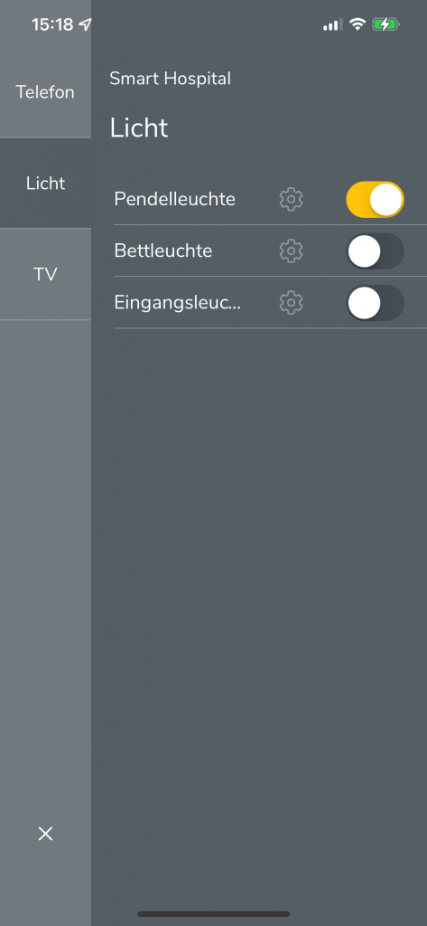 • Sie sehen eine Übersicht der steuerbaren Lampen im Zimmer.