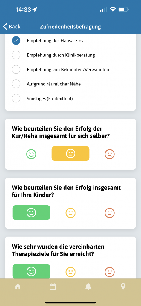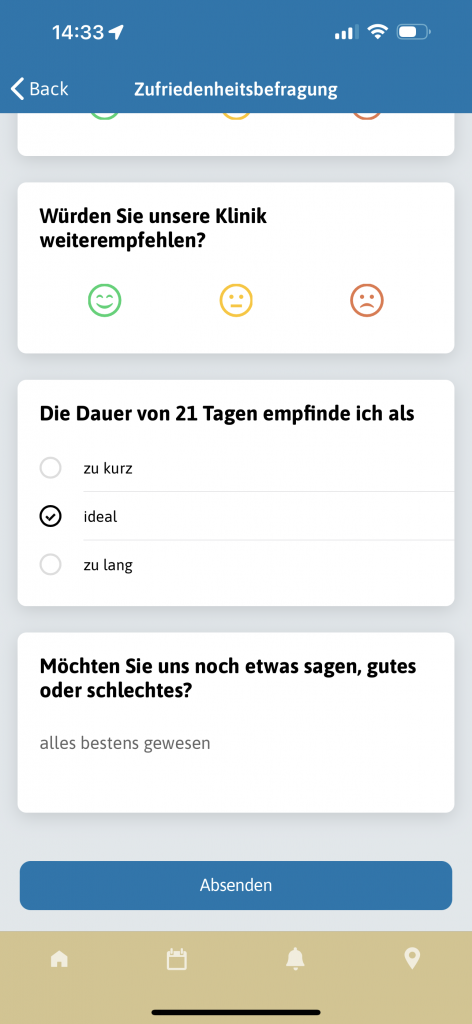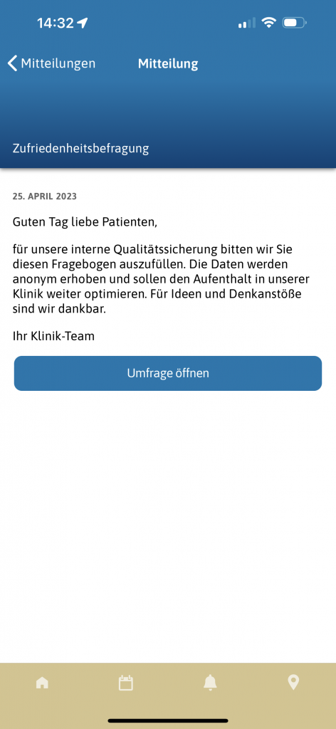 Der Patient bekommt den Link zum Zufriedenheit-Fragebogen über die Mitteilungen.